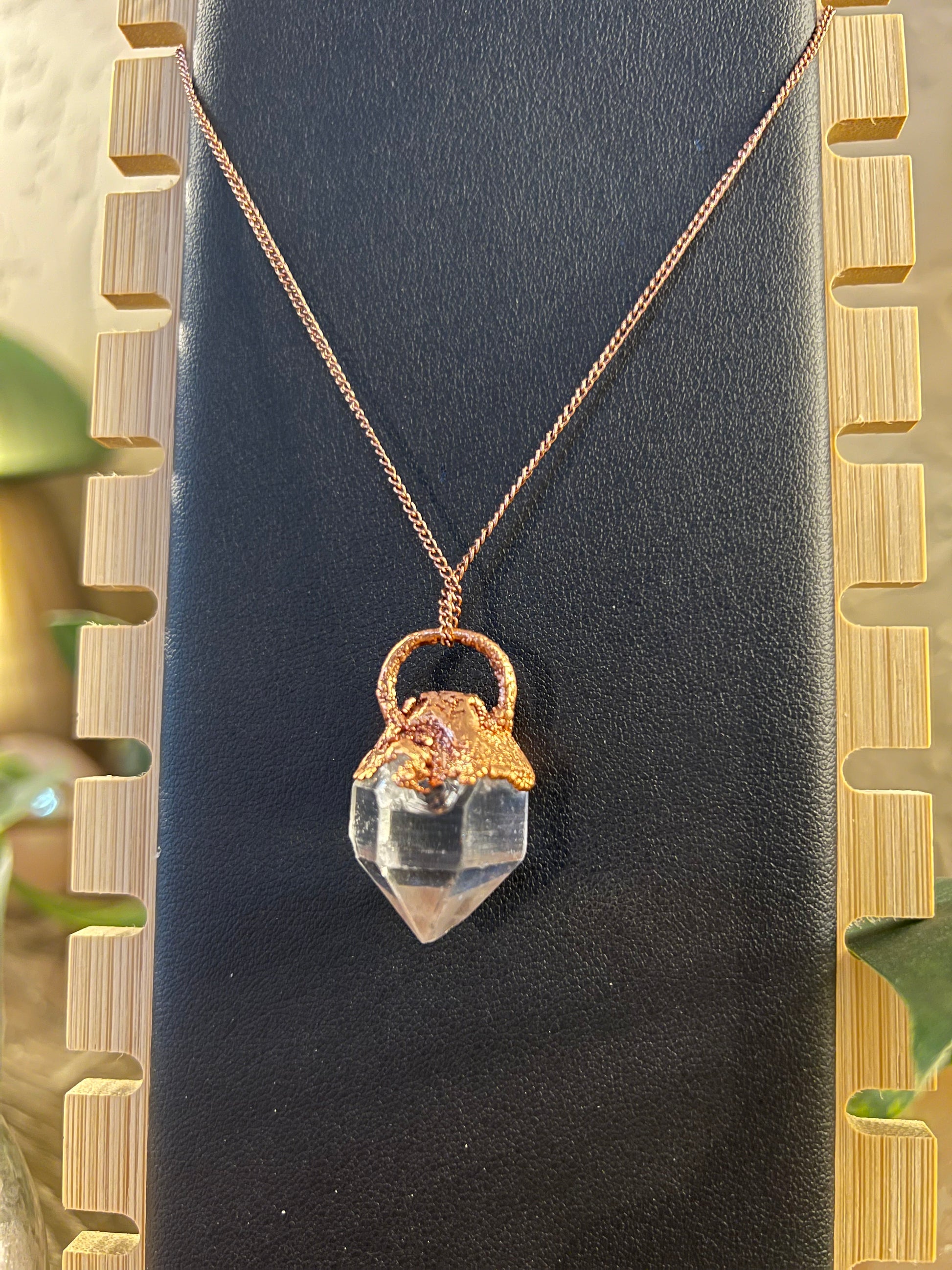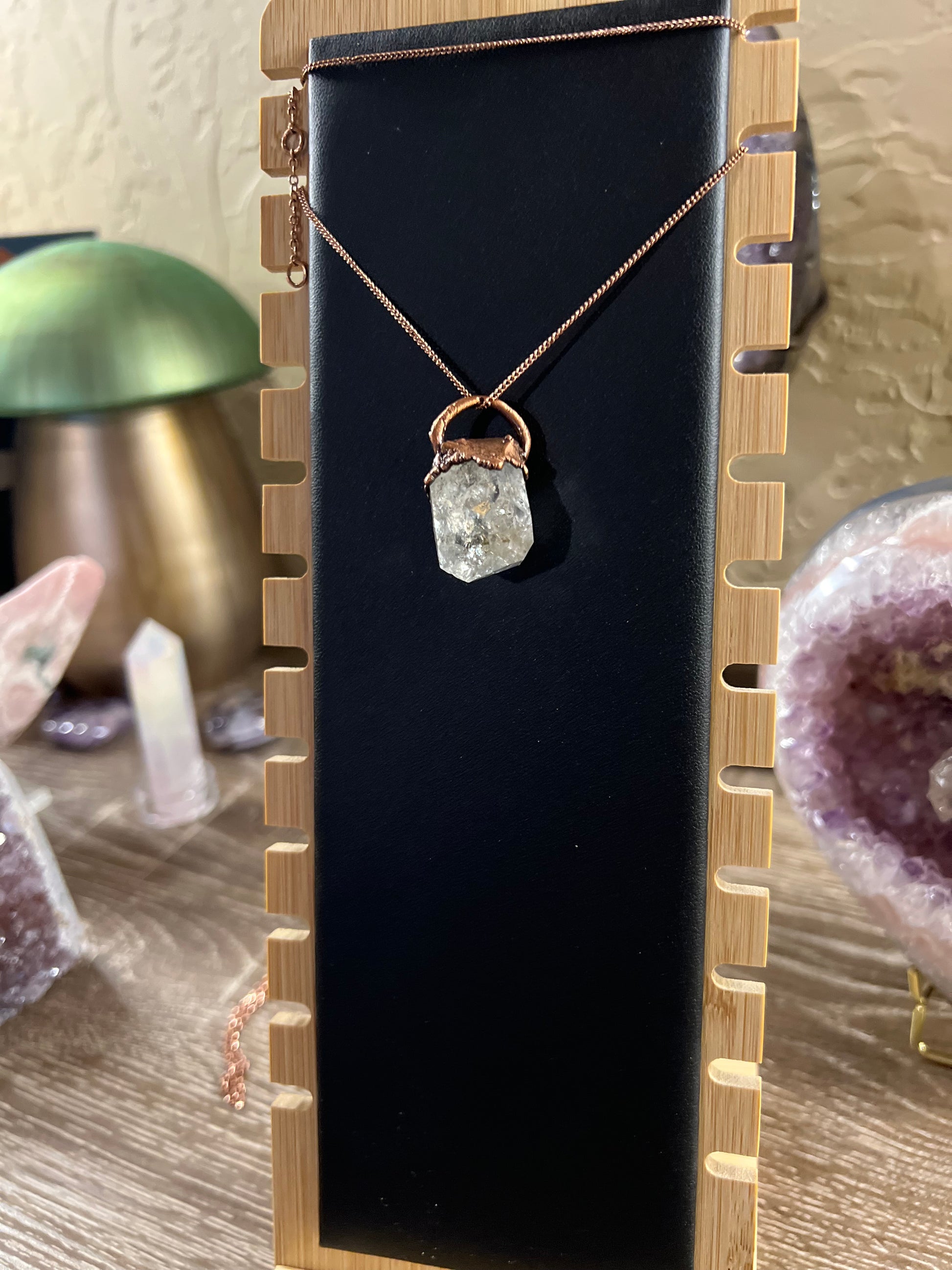Experience the beauty and energy of the earth with our unique Herkimer Diamond Necklace. Each necklace is hand-crafted with a raw herkimer diamond and features an electroformed finish for a natural and stunning look. Bring a touch of nature's beauty to any outfit and feel its positive energy all day long!